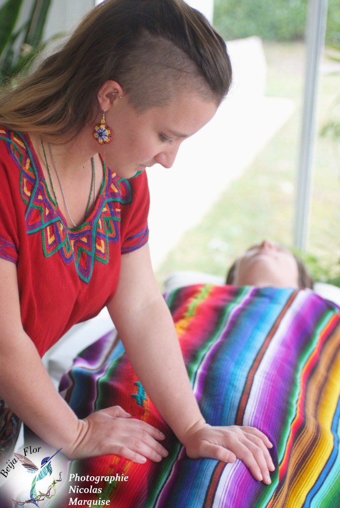 Ensuite, je continue sur l’ensemble de la zone abdominale pour terminer avec une reconnection de soi à soi, et au coeur.